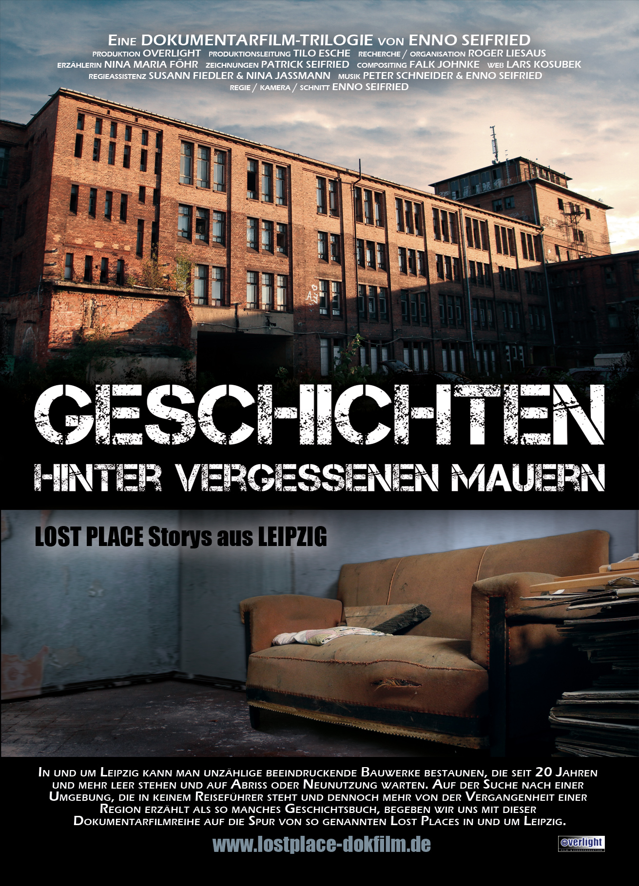 Mittlerweile gibt es eine Dokumentarfilm Trilogie, die über beeindruckende Bauwerke, unterirdische Keller- und Tunnelanlagen in und um Leipzig berichten. Seit über 20 Jahre stehen diese Gebäude und Anlagen leer und verfallen nach und nach. Ob diese Anlagen abgerissen oder für eine Neunutzung wiederverwendbar sind, ist eine frage des Geldes. Folgt den Spure der Lost Place mit den Dokumentarfilmen von OVERLIGHT FILM.